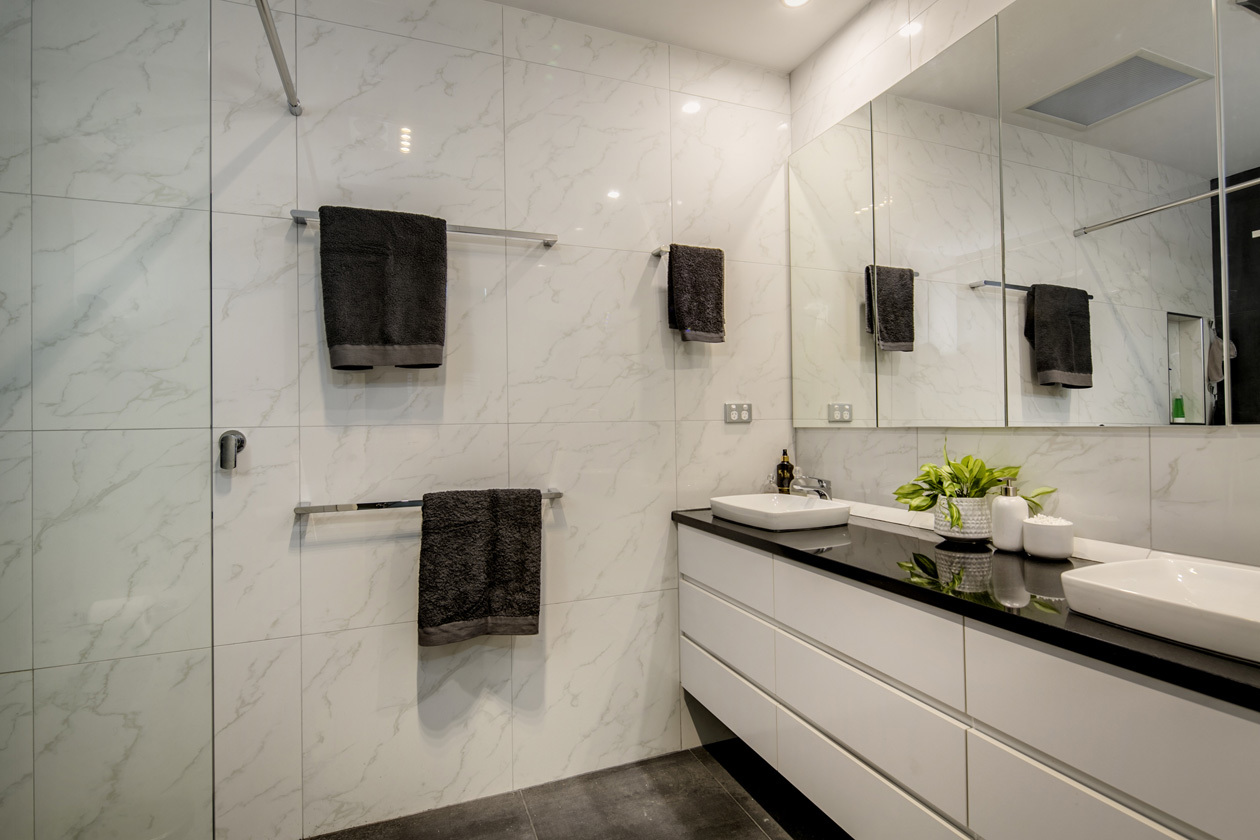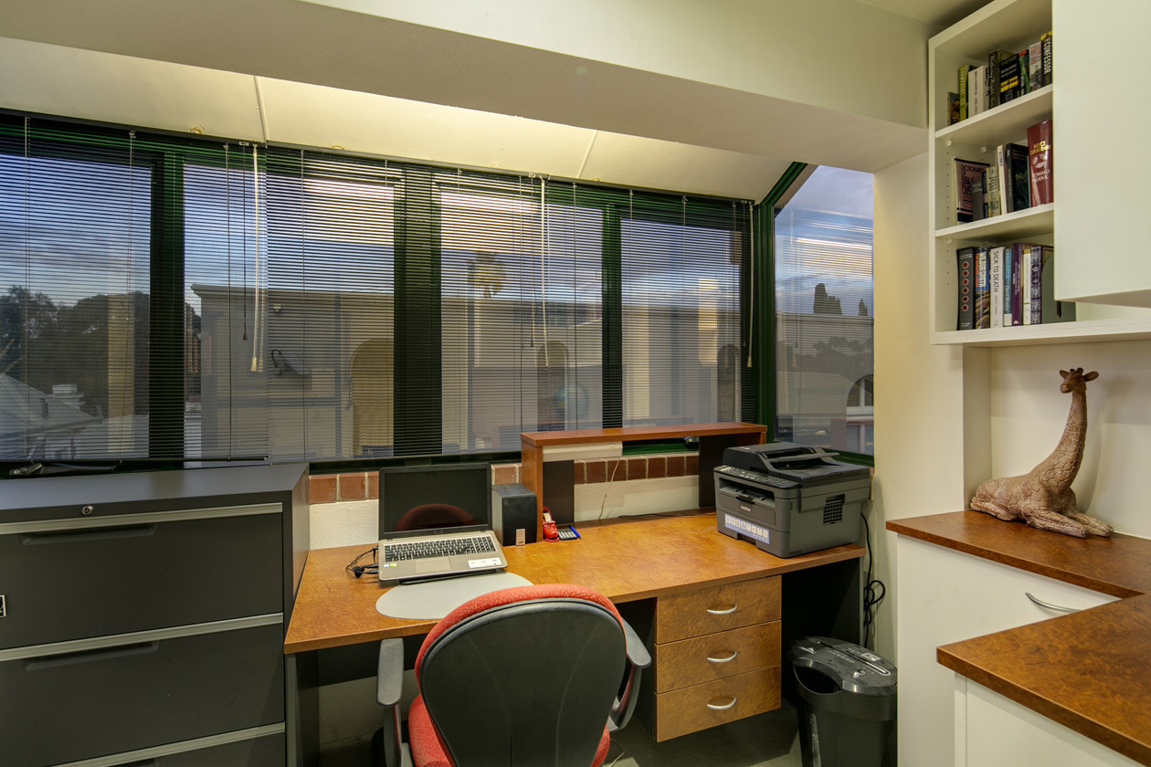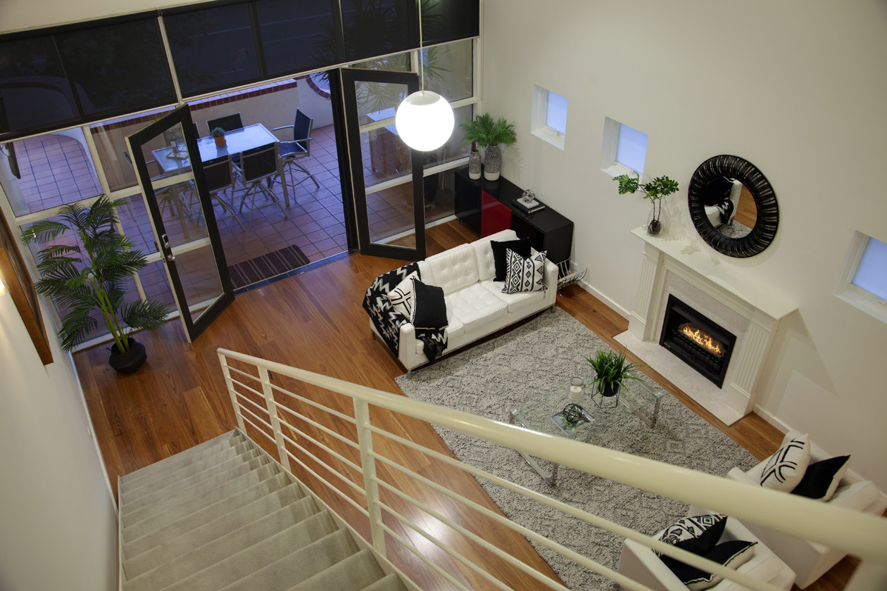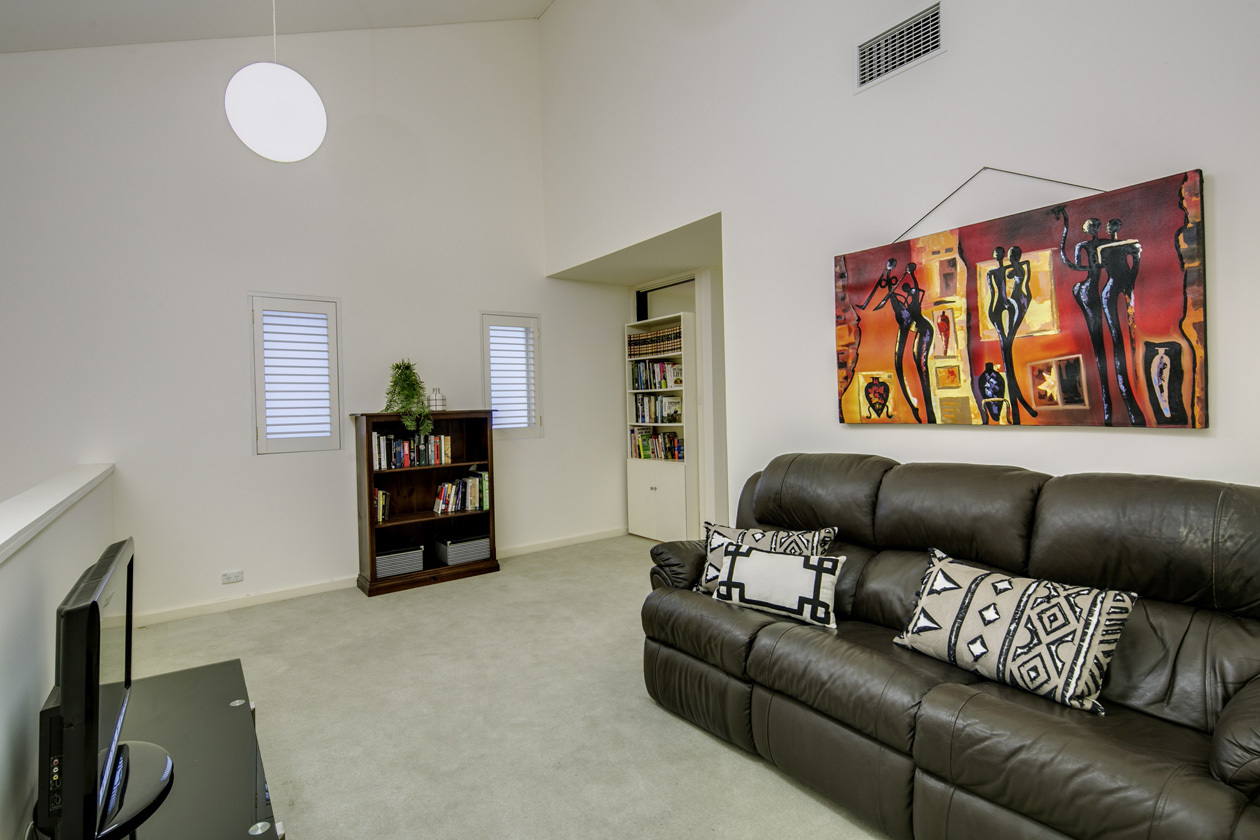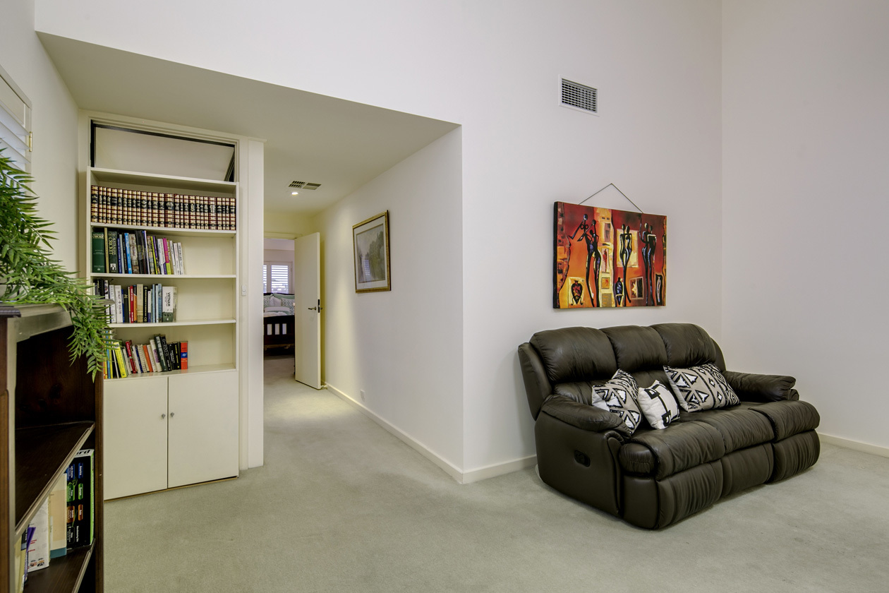 - Upper level – Main bedroom with walk-in robe and ensuite, study and sitting room