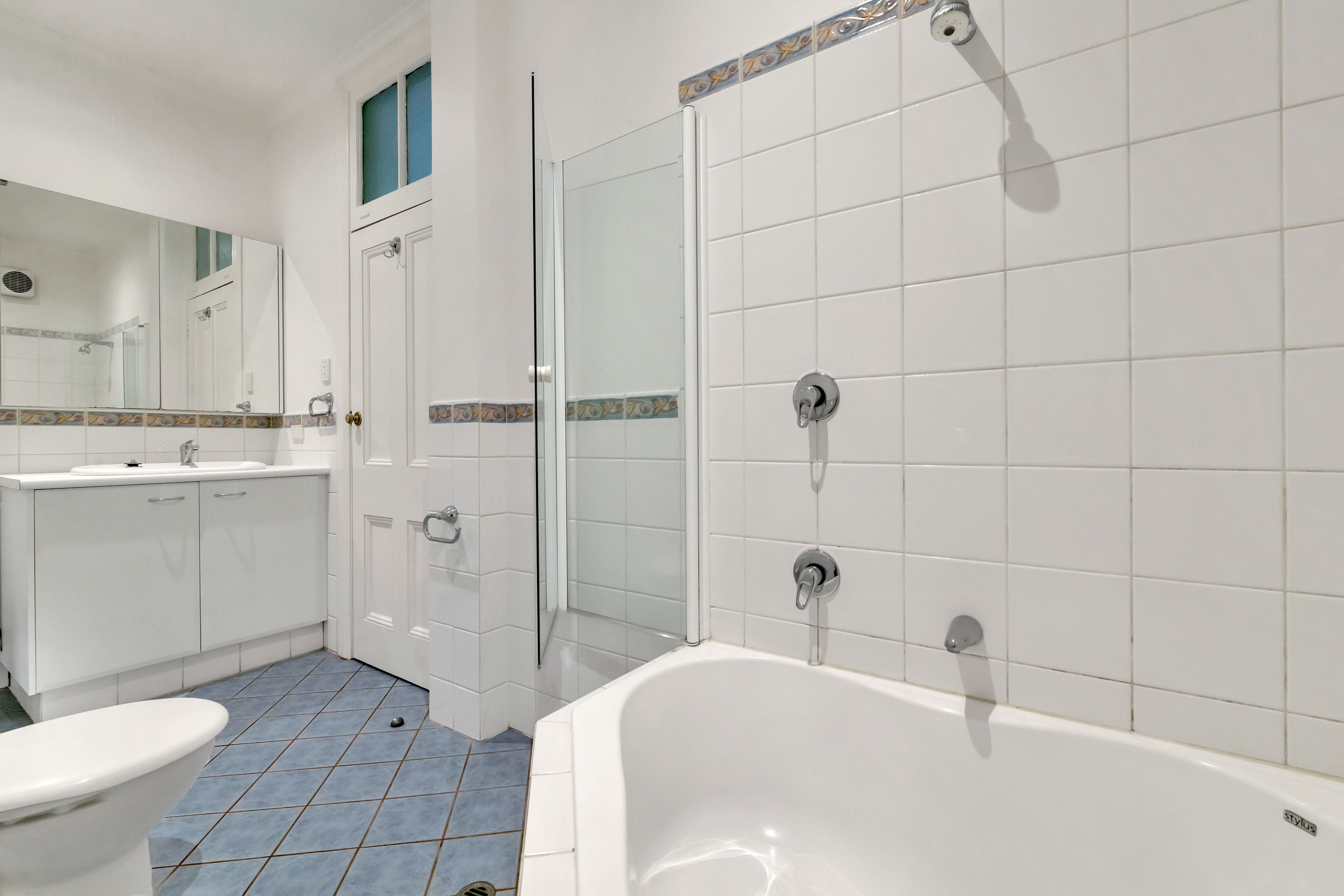 • Spacious bathroom with corner bath and shower combo