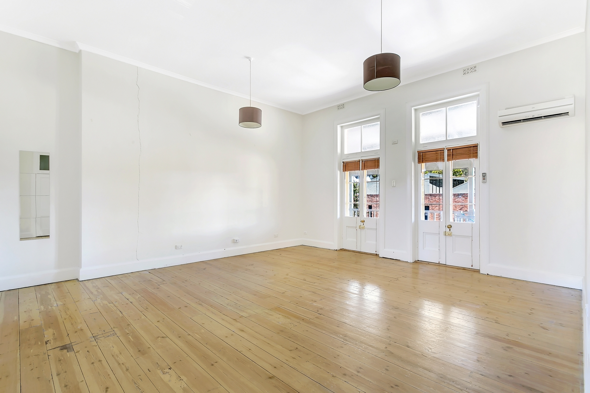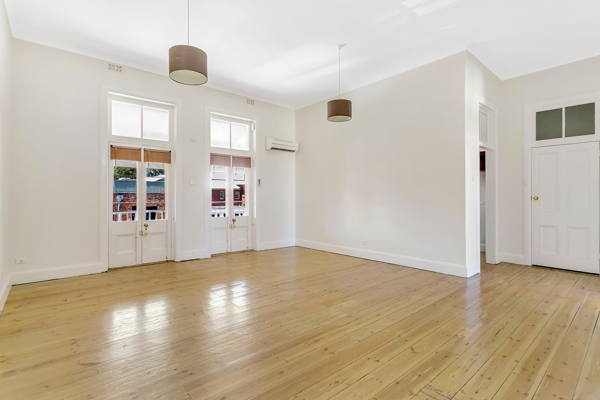 Both bedrooms are double size, one with built-ins. Open entertaining area with French doors opening onto balcony.